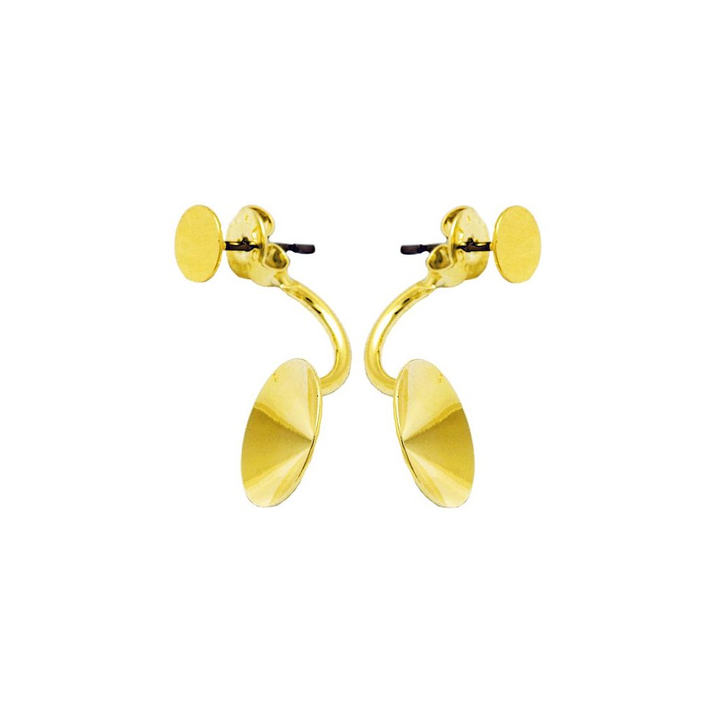 Náušnice na dříku Double, jsou určeny pro Swarovski Heart 6mm. Motýlek náušnic je opratřen závěsem pro Rivolu 12mm, díky tomuto efektu je tak krystal s předního pohledu pod uchem. Náušnice mají velmi kvalitní galvanizaci Gold Plating 24kt. Uvedená cena je za jeden pár.