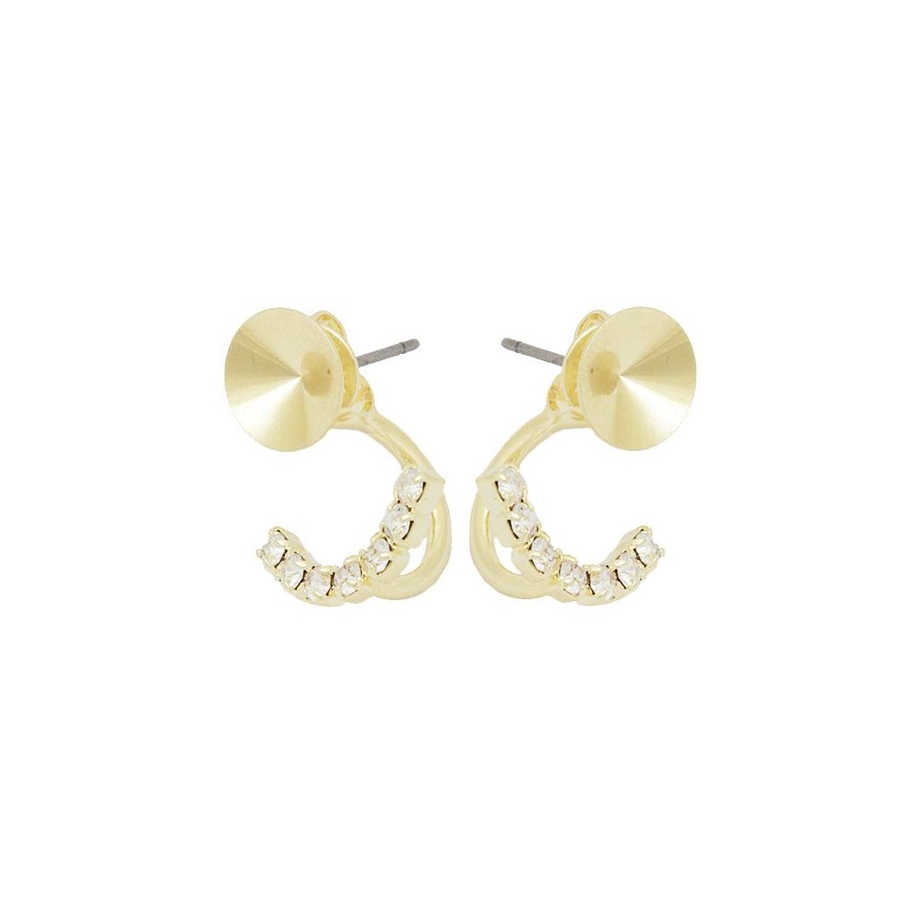 Náušnice na dříku Double, jsou určeny pro Swarovski či Preciosa Rivoli 8mm. Motýlek náušnic je opratřen závěsem se strassem Swarovski, díky tomuto efektu je tak strass s předního pohledu pod uchem. Náušnice mají velmi kvalitní galvanizaci Gold Plating 24kt. Uvedená cena je za jeden pár.