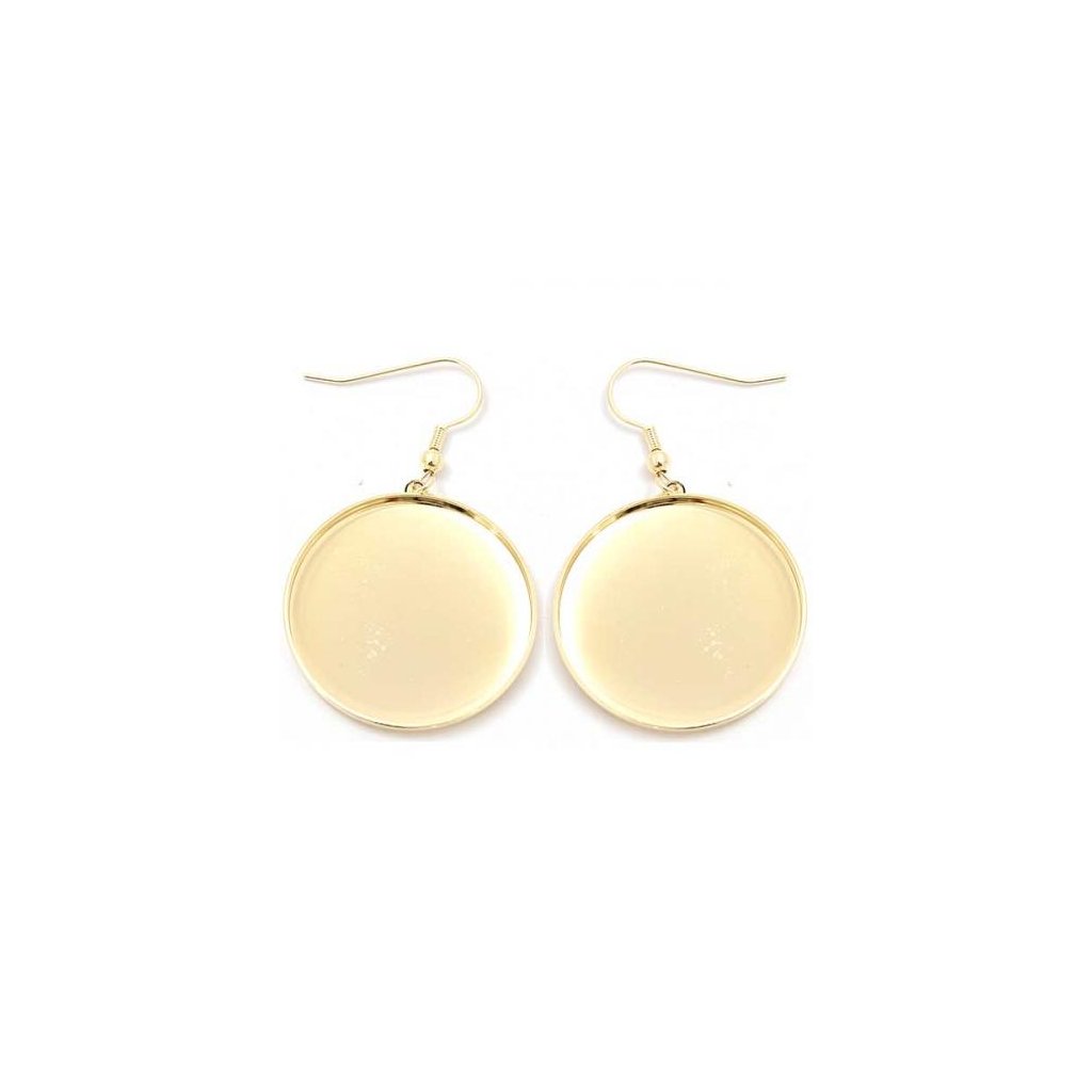 Náušnice ve tvaru kruhu o rozměru 30mm. Náušnice mají povrchovou úpravu gold plating 24kt. Jsou vhodné pro lepení kabašonů, prací s Fimo hmotou, popřípadě pryskyřicí.