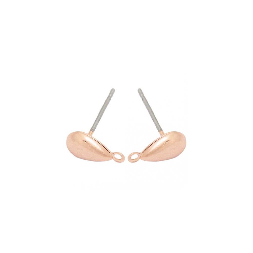 Bižuterní náušnicová puzeta kapka s očkem v galvanické povrchové úpravě rose gold. Rozměr kapky 8/4mm. Balení obsahuje jeden pár.