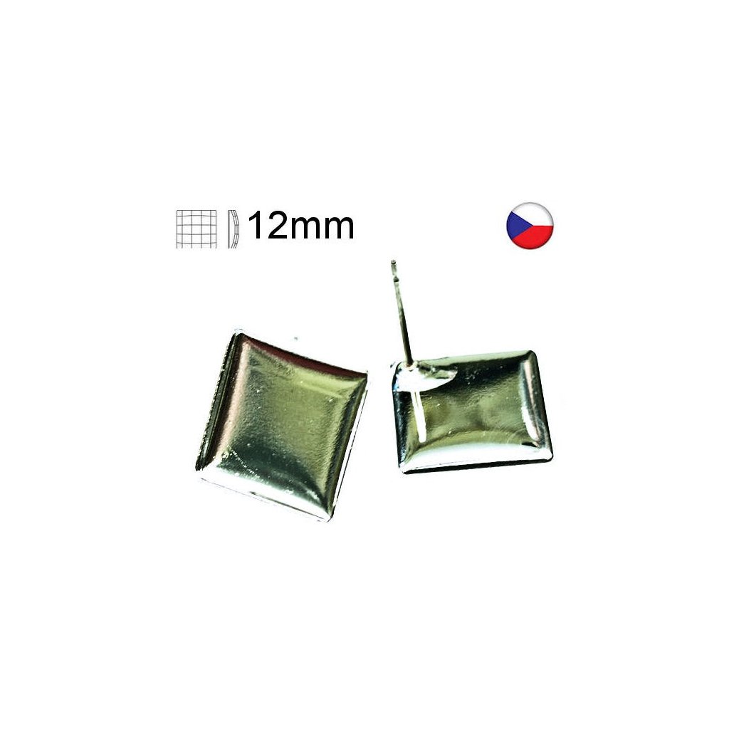 Náušnicový trn koso Chessboard 12mm Rhodium