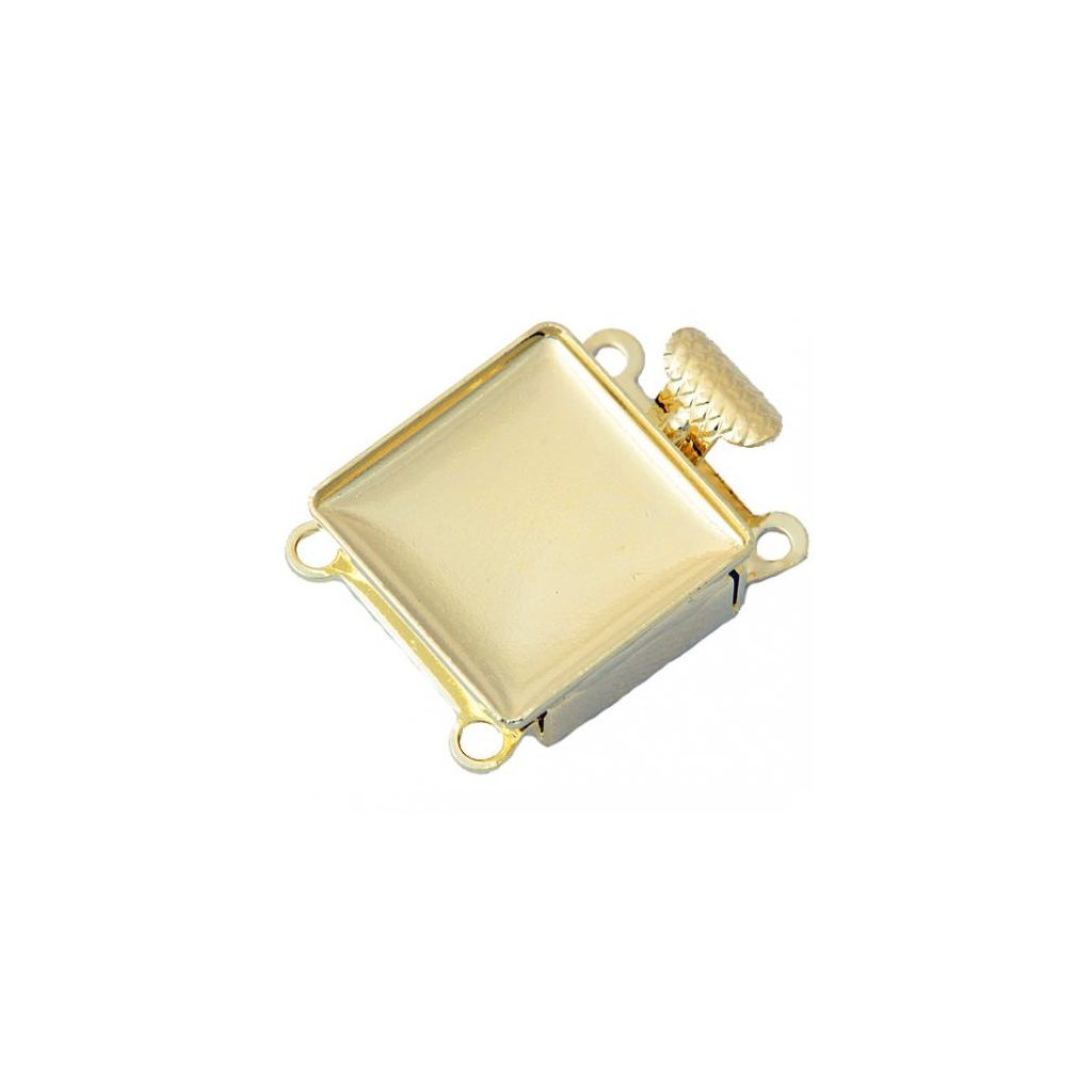 Ozdobné zapínání pro dvouřadý šperk. Zámeček má rozměr 12mm a povrchovou úpravu Gold Plating 24kt. Vhodné pro Swarovski Chessboard 12mm, můžete ale použít i Fimo, polymerovou hmotu popřípadě pryskyřici. Vytvoříte si tak záponku přesně pro váš šperk. Balení obsahuje jednu záponku.