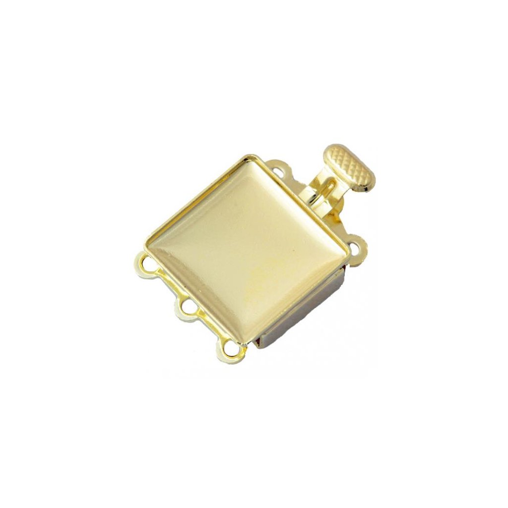 Ozdobné zapínání pro třířadý šperk. Zámeček má rozměr 12mm a povrchovou úpravu Gold Plating 24kt. Vhodné pro Swarovski Chessboard 12mm, můžete ale použít i Fimo, polymerovou hmotu popřípadě pryskyřici. Vytvoříte si tak záponku přesně pro váš šperk. Balení obsahuje jednu záponku.