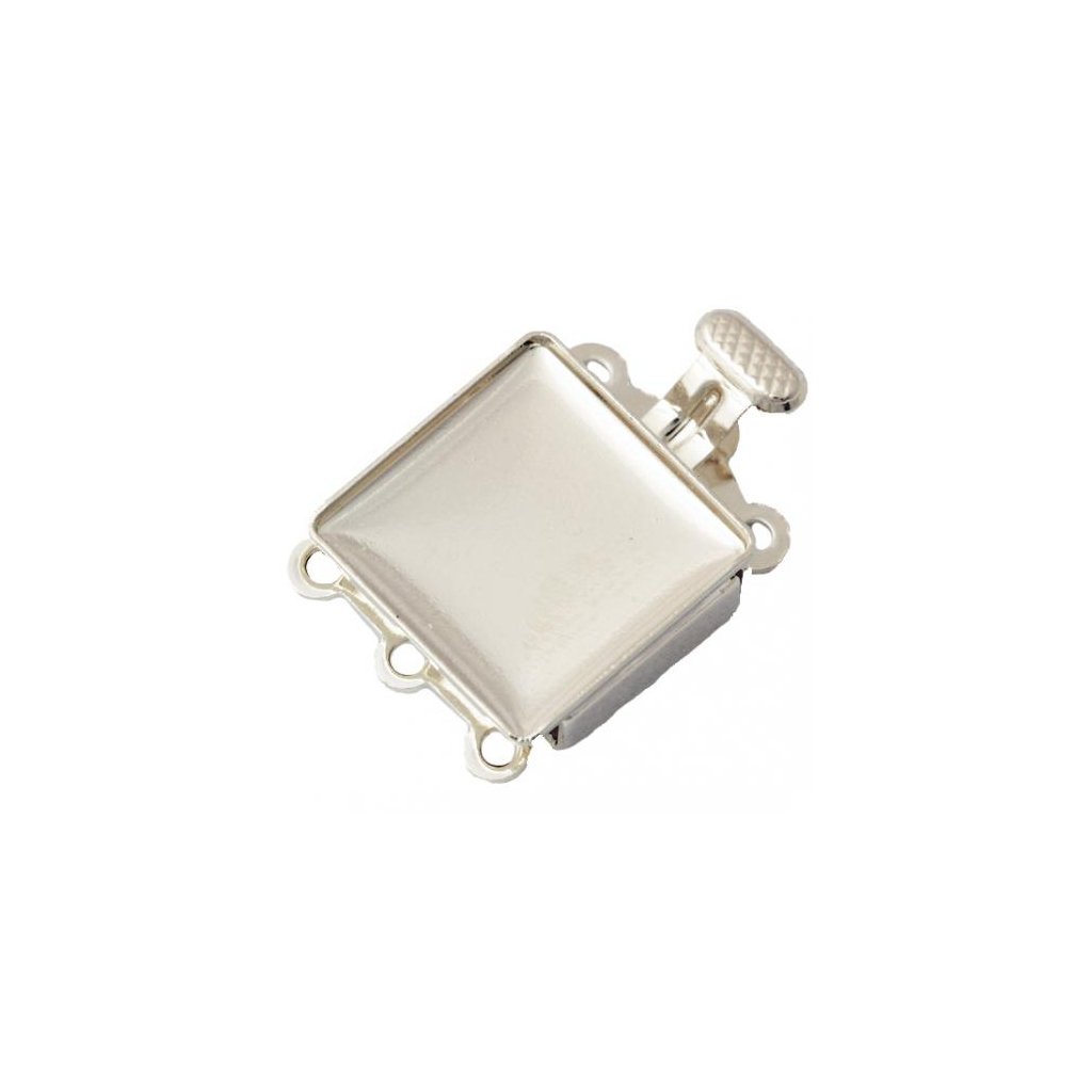 Ozdobné zapínání pro třířadý šperk. Zámeček má rozměr 12mm a povrchovou úpravu Rhodium. Vhodné pro Swarovski Chessboard 12mm, můžete ale použít i Fimo, polymerovou hmotu popřípadě pryskyřici. Vytvoříte si tak záponku přesně pro váš šperk. Balení obsahuje jednu záponku.