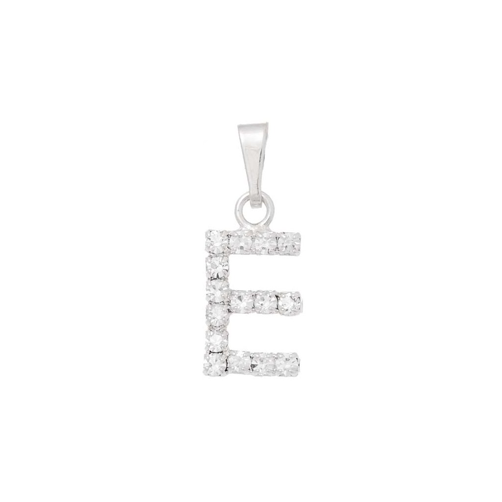 Štrasový přívěsek ve tvaru písmenka „E“. Písmenko má rozměr 13mm a povrchovou úpravu rhodium. Za pomocí dalších písmenek, si můžeš složit své slovo.