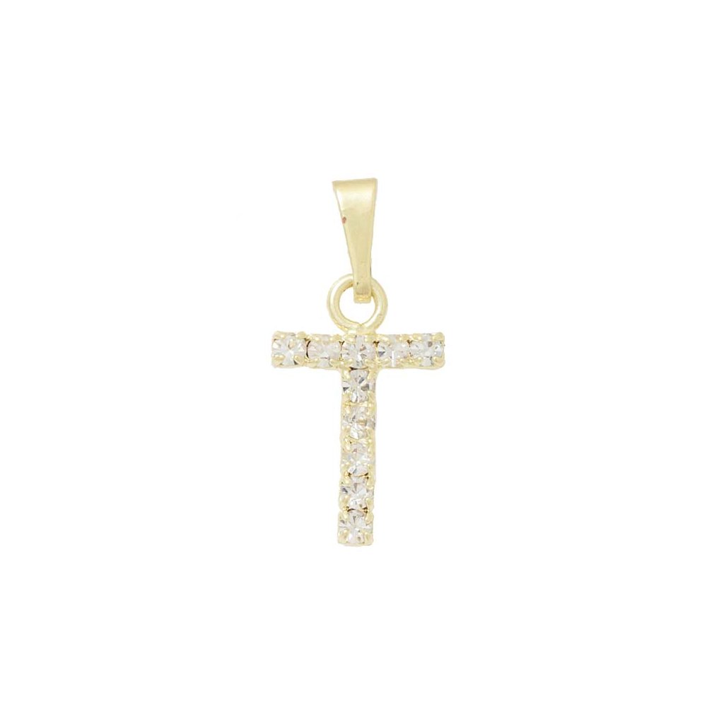 Štrasový přívěsek ve tvaru písmenka „T“. Písmenko má rozměr 13mm a povrchovou úpravu gold plating 24kt. Za pomocí dalších písmenek, si můžeš složit své slovo.