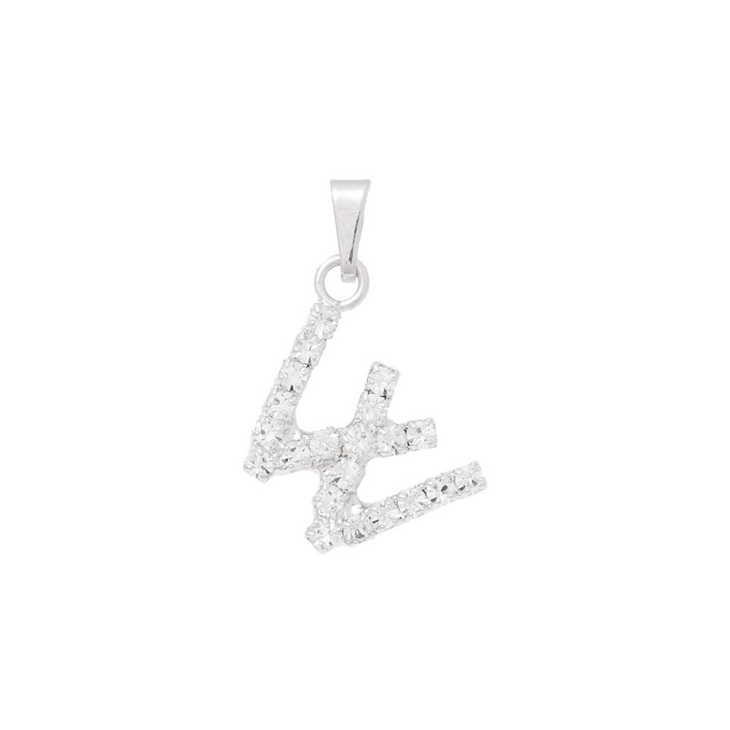 Štrasový přívěsek ve tvaru písmenka „W“. Písmenko má rozměr 13mm a povrchovou úpravu rhodium. Za pomocí dalších písmenek, si můžeš složit své slovo.