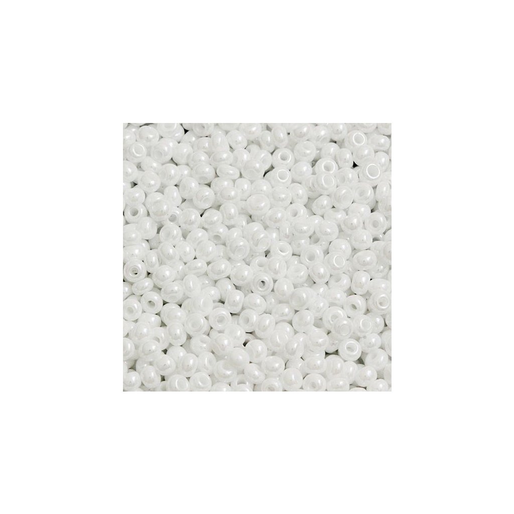 Rokajlové korálky od firmy Preciosa ve tvaru kuličky v barevném provedení bílá s úpravou listr o velikosti 12/0(1,9mm). Korálky jsou vhodné na šití, vyšívání, navlékaní a jiné techniky. Cena je uvedena za balení 50g.