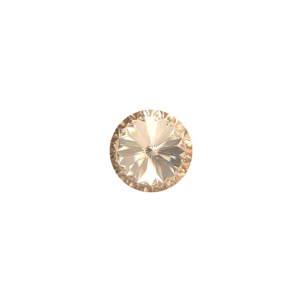 Kulatý krystal Preciosa Rivoli MAXIMA o rozměru 14mm a barevném provedení Honey F. Krystal je vhodný pro lepení a usazování do lůžek, polymerových hmot, či obšívání.