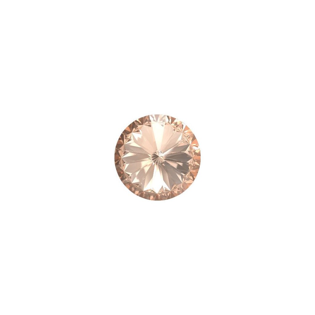 Kulatý krystal Preciosa Rivoli MAXIMA o rozměru ss39 a barevném provedení Light Peach F. Krystal je vhodný pro lepení a usazování do lůžek, polymerových hmot, či obšívání.