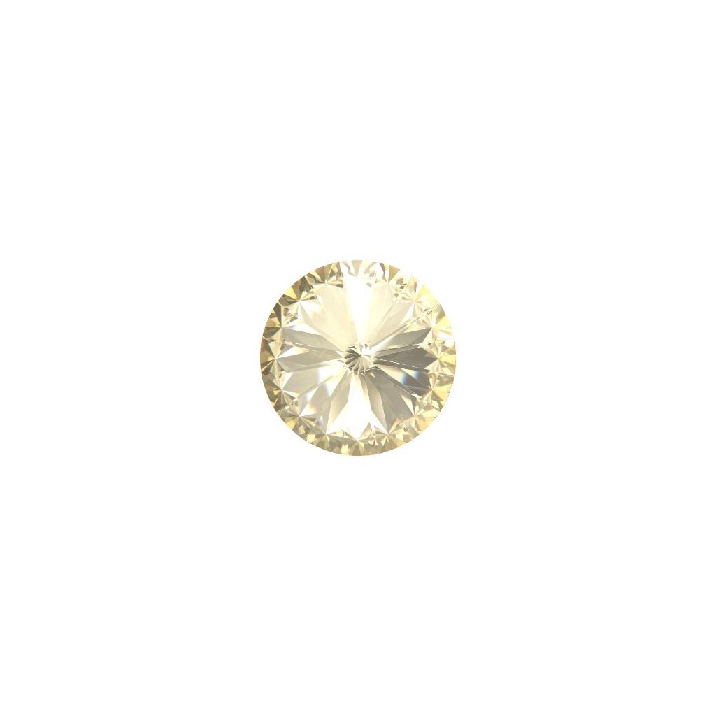 Kulatý krystal Preciosa Rivoli MAXIMA o rozměru ss47 a barevném provedení Blond Flare F. Krystal je vhodný pro lepení a usazování do lůžek, polymerových hmot, či obšívání.