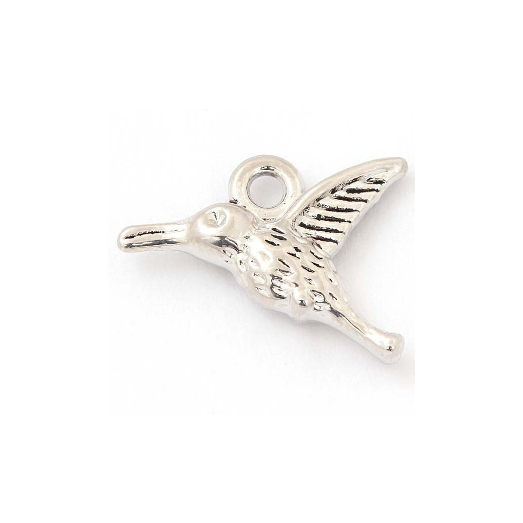 Kovový přívěsek ve tvaru Kolibříka o rozměru 16/14mm a povrchové úpravě rhodium. Přívěsek můžete jednoduše zavěsit na náramek, řetízek, náušnice či jiný šperk.