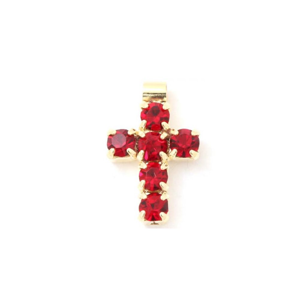 Malý křížek ze štrasu o rozměru 10/7mm, barva krystalů siam a povrchová úprava gold plating 24kt. Křížek má na vrchní straně trubičku s průtahem 1,8mm. Lze jej tak navléce jako korálek mezi korálky či přívěsek.