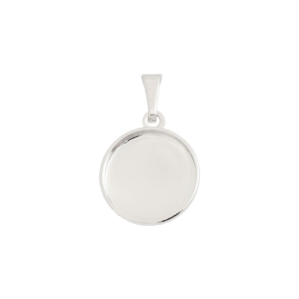 Přívěsek ve tvaru kruhu o rozměru 12mm s galvanickou povrchovou úpravou Rhodium. Přívěsek je vhodný pro lepení kabošonů, nebo pro práci s polymerovou hmotou či pryskyřicí. Balení obsahuje jeden kus.
