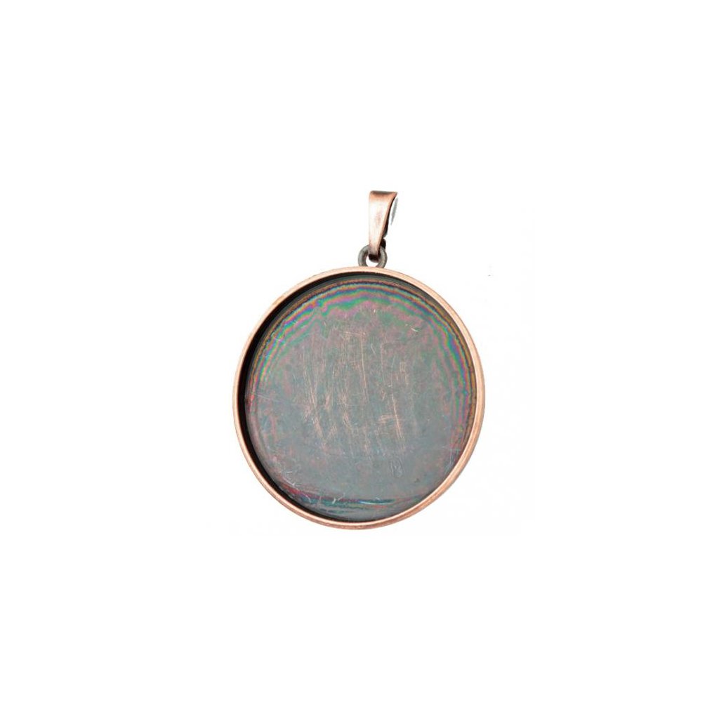 Přívěsek ve tvaru kruhu o rozměru 18mm. Přívěsek má povrchovou úpravu stará měď. Je vhodný pro lepení kabašonů, prací s Fimo hmotou, popřípadě pryskyřicí.