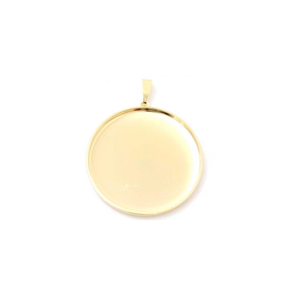 Přívěsek ve tvaru kruhu o rozměru 30mm. Přívěsek má povrchovou úpravu gold plating 24kt. Je vhodný pro lepení kabašonů, prací s Fimo hmotou, popřípadě pryskyřicí.
