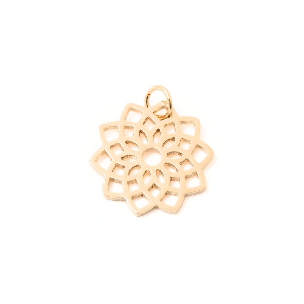 Kovový přívěsek květ života o rozměru 16mm. Přívěsek ve tvaru květu života je vyroben z chirurgické oceli s povrchovou úpravou rose gold.