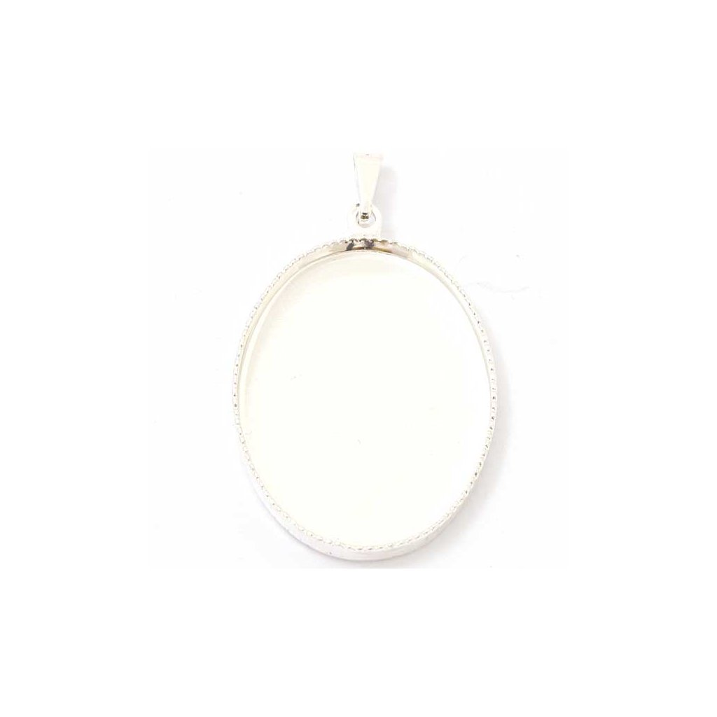 Přívěsek ve tvaru oválu s vroubky o rozměru 30/22mm a povrchové úpravě ag clear. Lůžko je určeno pro lepení kamene, mugle, kabašonu, pryskyřice či polymerové hmoty.