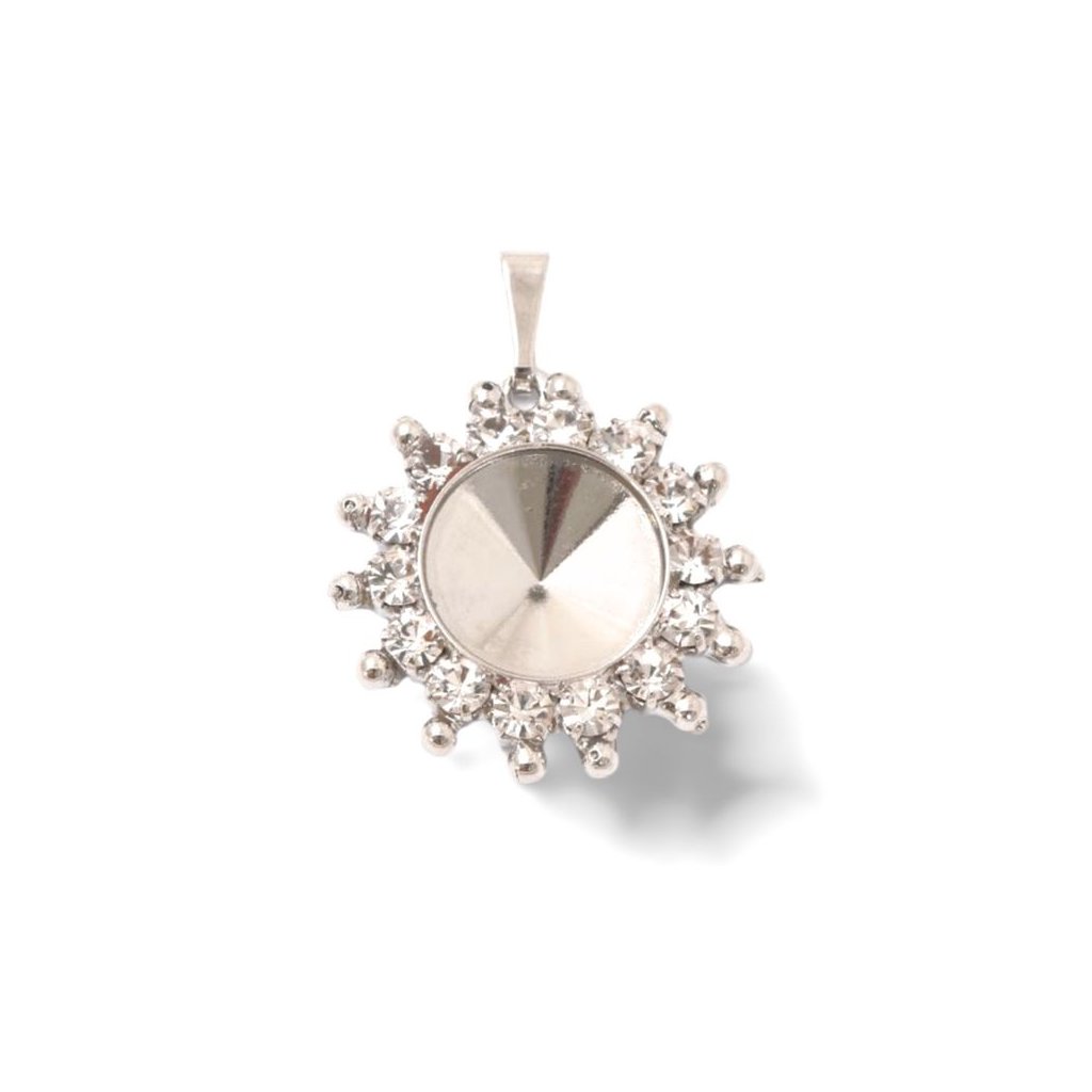 Přívěsek je určen pro krystal Swarovski či Preciosa Rivoli o rozměru 12mm. Přívěsek je zdoben štrasem s krystaly Swarovski. Přívěsek má kvalitní povrchovou úpravu Rhodium. Uvedená cena za jeden kus.