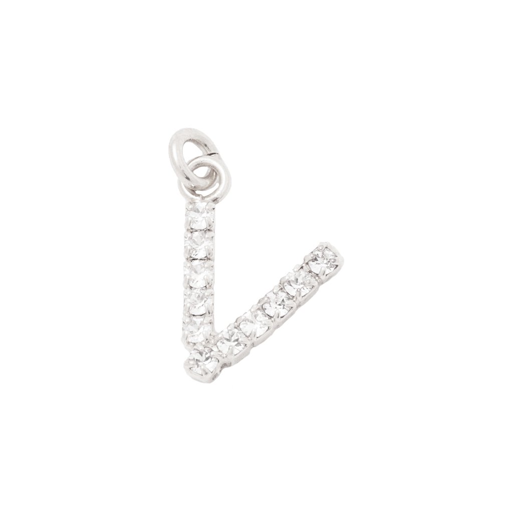 Přívěsek s kroužkem písmeno „V“ o rozměru 13mm je vhodný na zavěšení na řetízek či náramek. Přívěsek má kvalitní povrchovou úpravu rhodium.