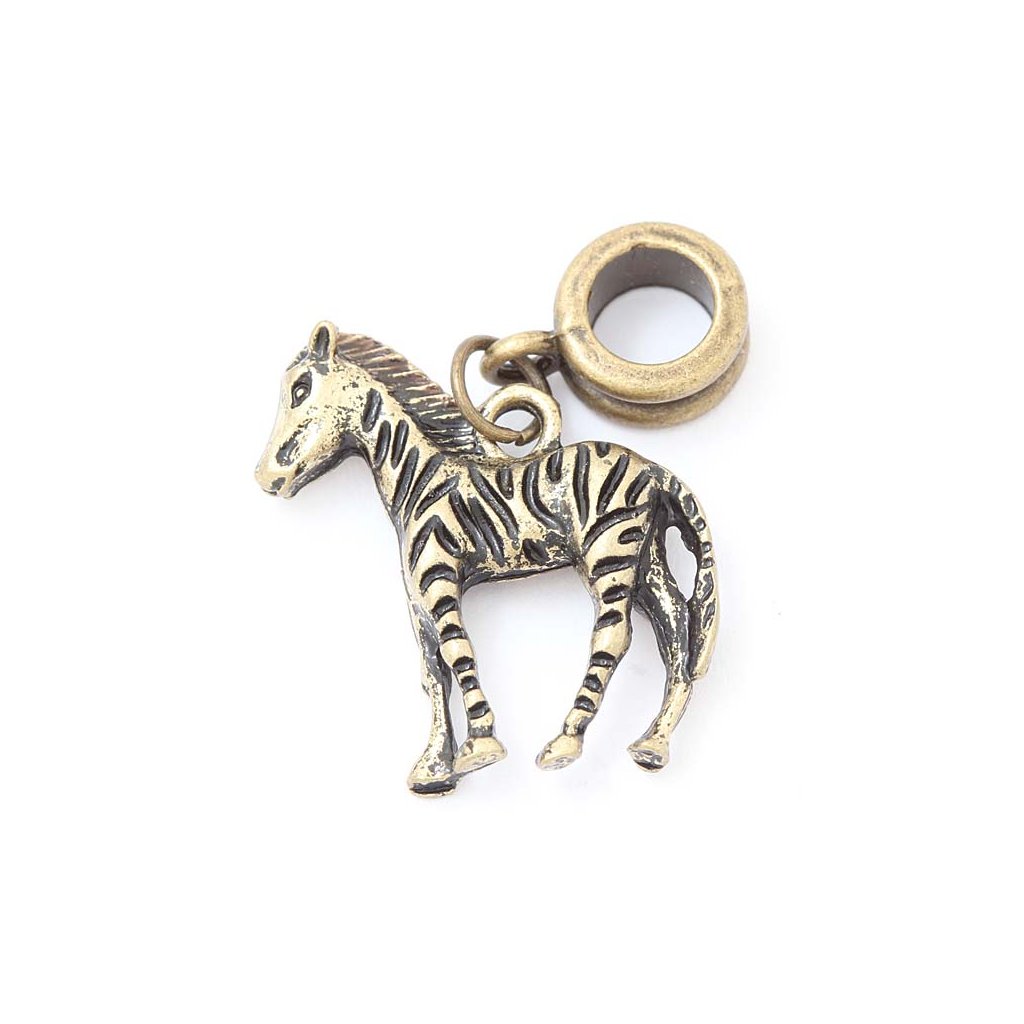Kovový přívěsek ve tvaru Zebry o rozměru 20mm a povrchové úpravě staré zlato. Přívěsek můžete jednoduše zavěsit na náramek, řetízek, náušnice či jiný šperk.