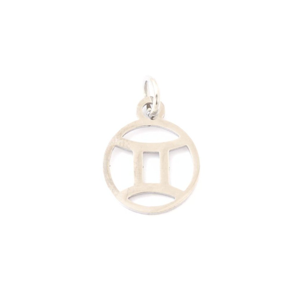 Kovový přívěsek znamení zvěrokruhu Blíženci o rozměru 13/11mm. Přívěsek je vyroben z chirurgické oceli.