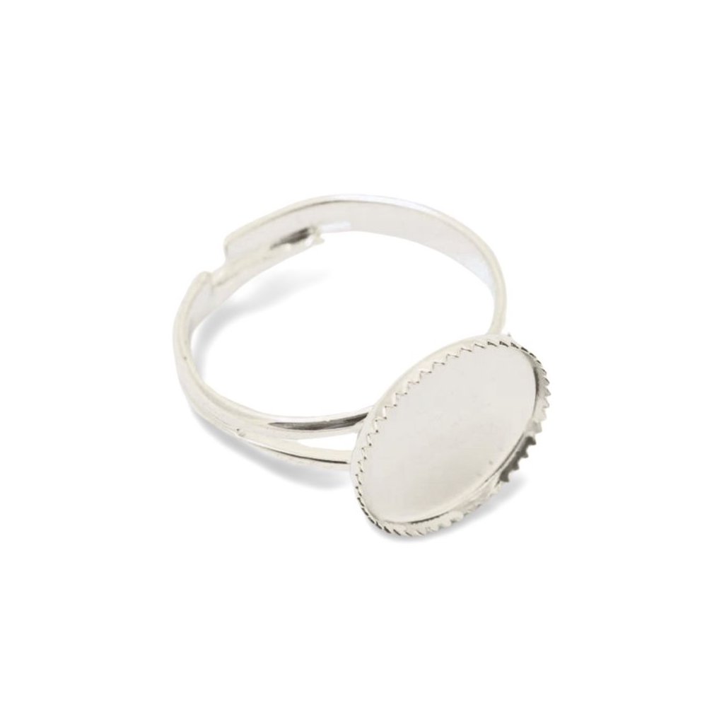 Prsten s kulatým lůžkem s vroubkem o rozměru 12mm a povrchové úpravě platina. Do lůžku pasuje crystaROCKS Swarovski, ale můžete jej použit i na pryskyřici či polymerové hmoty.
