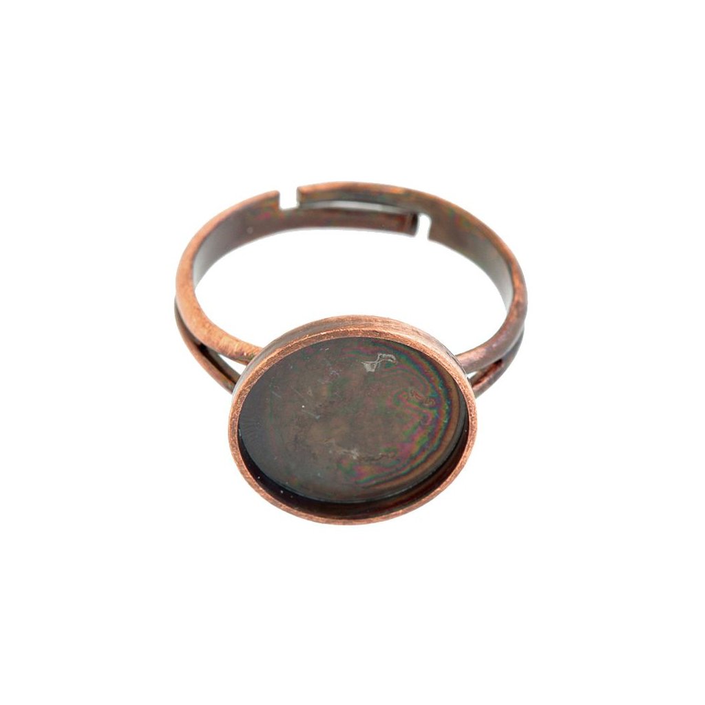 Prsten s lůžkem ve tavru kruhu o rozměru 12mm v povrchové úpravě stará měď. Prsten je vhodný pro lepení kabošonů a polymerových hmot. Balení obsahuje jeden kus.