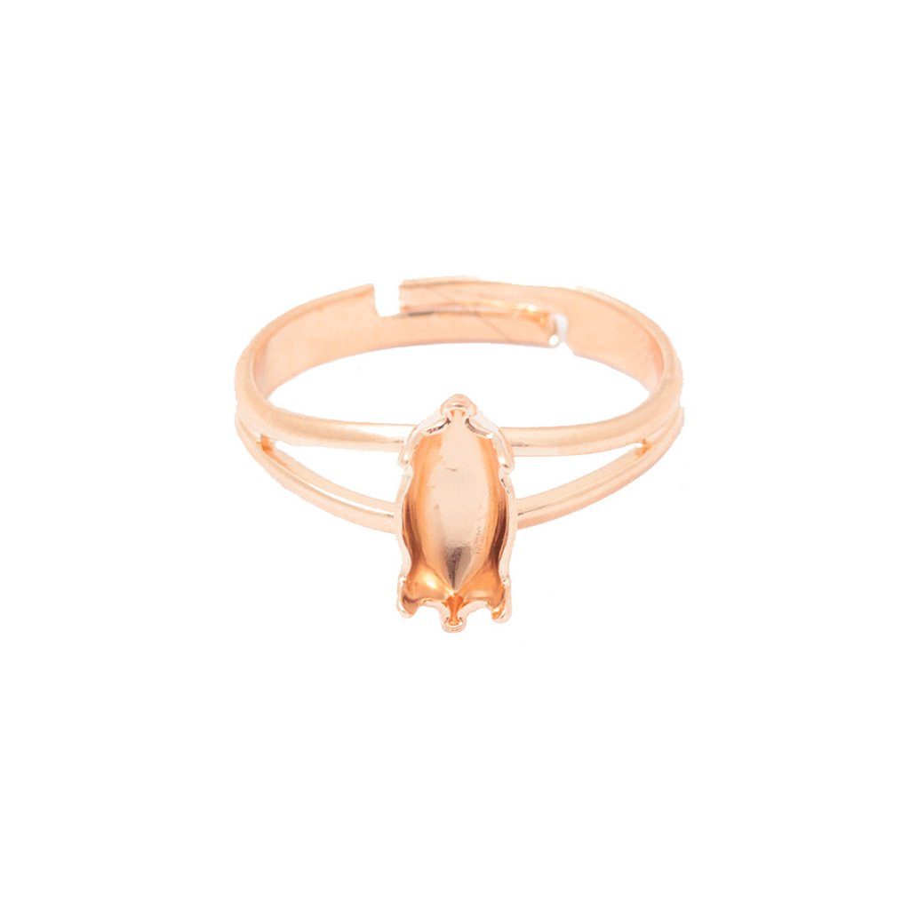 Prsten s lůžkem pro krystal Swarovski Naveta 4228 o rozměru 15/7mm. Kamínek se do prstenu nelepí, ale používají se krapny k jednoduchému usazení a upevnění. Prsten má kvalitní povrchovou úpravu rose gold.
