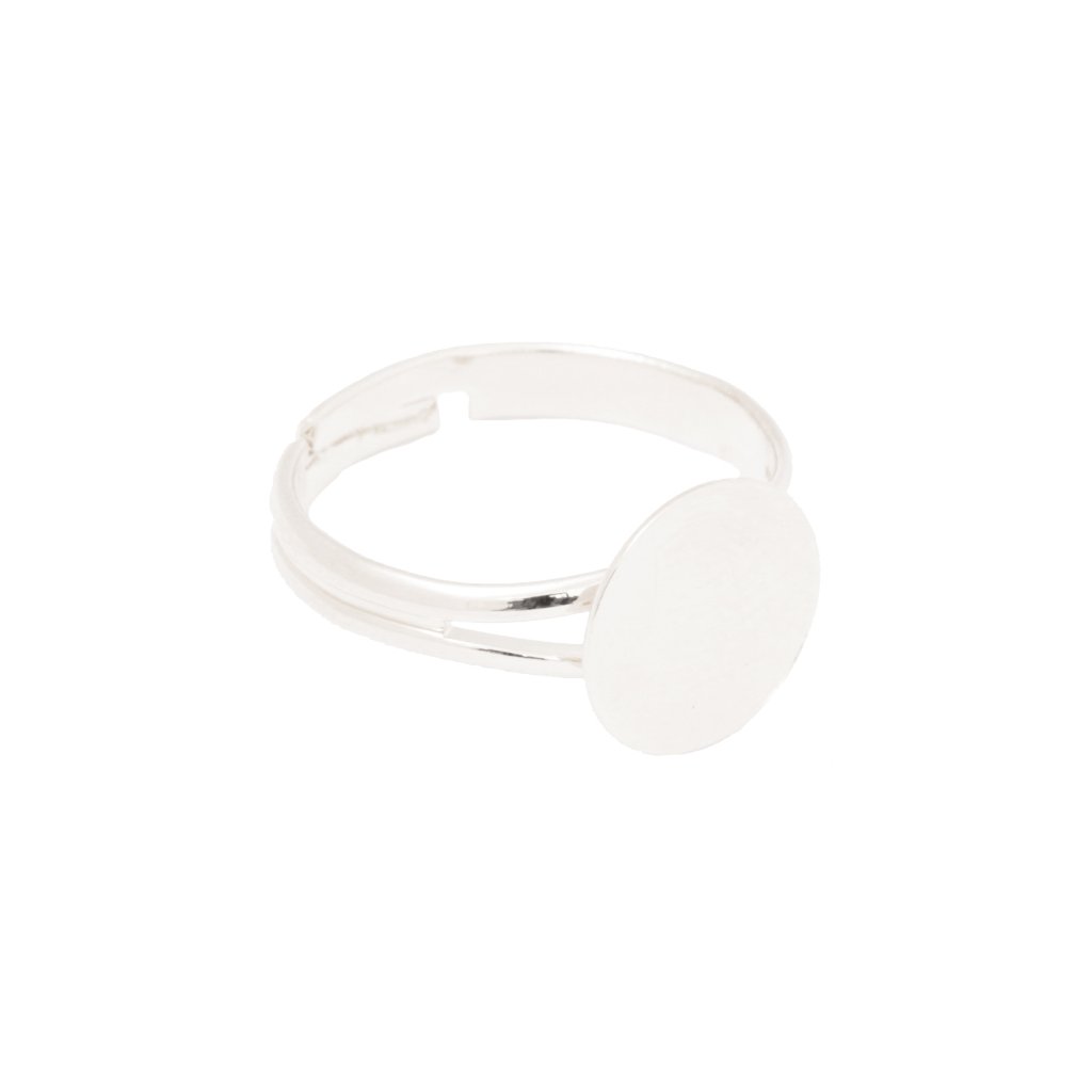 Prsten s ploškou ve tvaru kruhu o rozměru 10mm a povrchovou úpravou ag clear. Ploška je vhodná na lepení kabošonů, kamenů, korálků, popřípadě na polymerové hmoty.