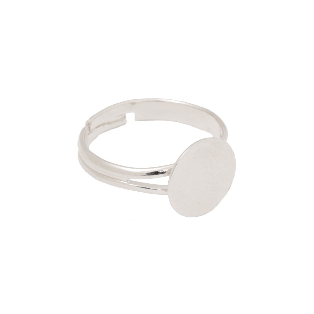 Prsten s ploškou ve tvaru kruhu o rozměru 10mm a povrchovou úpravou platina. Ploška je vhodná na lepení kabošonů, kamenů, korálků, popřípadě na polymerové hmoty.