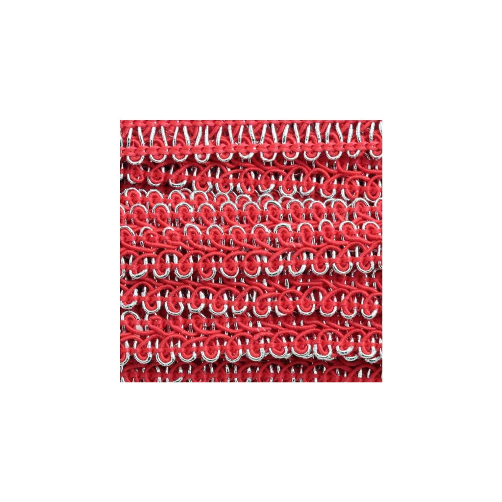 Prýmek s lurexem o šíři 9mm v barevném provedení červená. Prýmek je vhodný na zdobení oděvů, kabelek a šperků. Prýmek dodáváme na metry, více metrů bude dodáno v kuse.