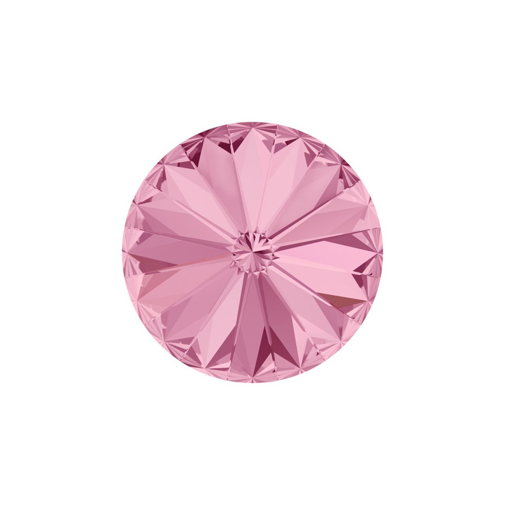 Kulatý skleněný broušený krystal Rivoli o rozměru 12mm. Rivolka má barvené provedení Light rose F. Krystal můžete obšít či vlepit do lůžka pro krytaly o velikosti 12mm.