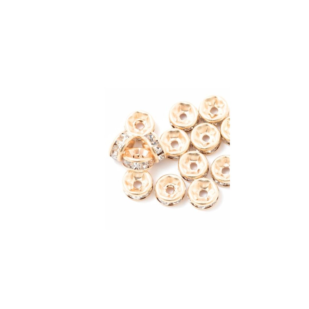 Šatonový korálek rondelka o rozměru 6/3mm z chirurgické oceli a povrchové úpravě rose gold. Rondelka má kameny v barvě krystal.