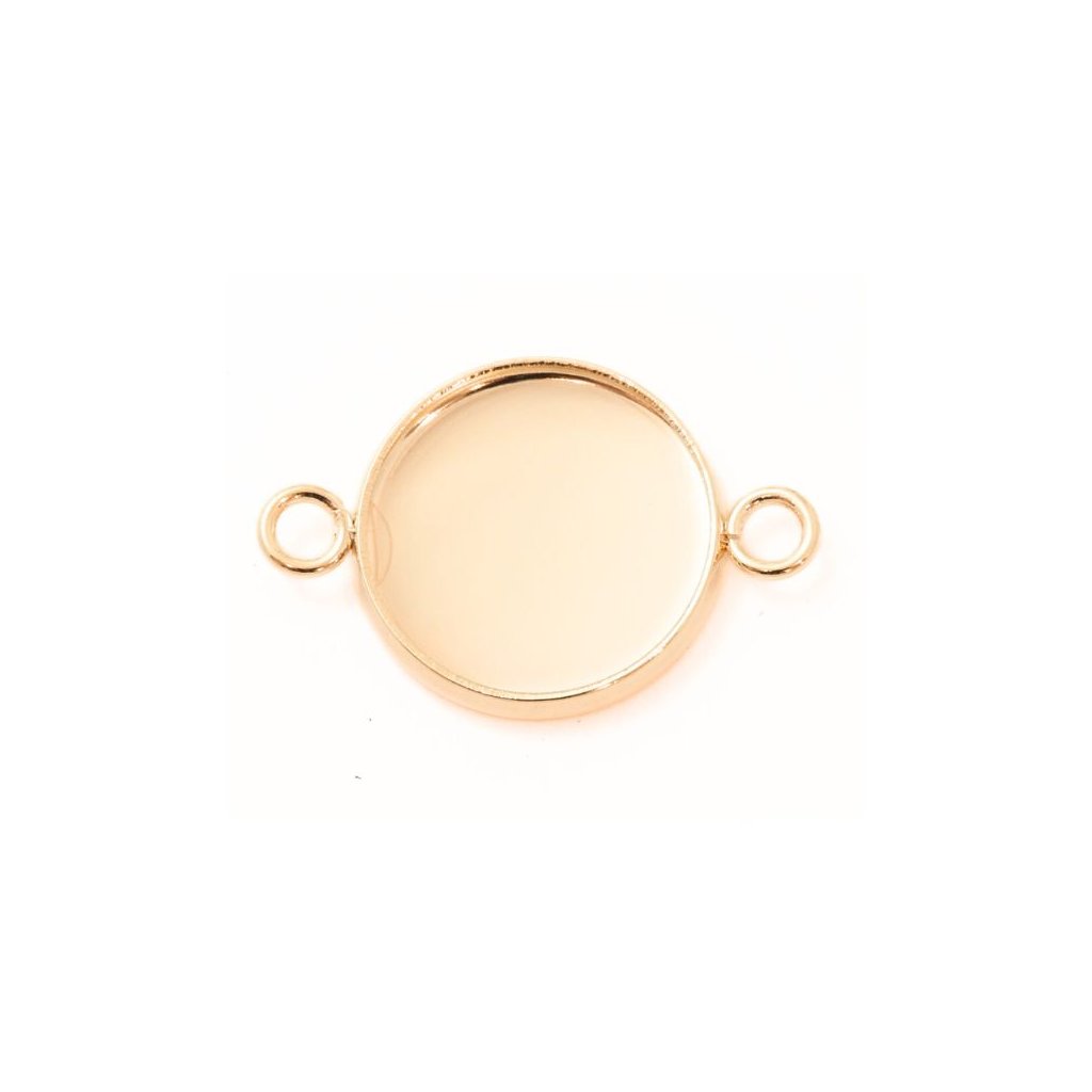 Spojovací kovodíl s lůžkem ve tvaru kruhu o rozměru 12mm. Kovodíl je vyroben z chirurgické oceli s povrchovou úpravou rose gold, je vhodný jako komponent na náramek, náušnice či náhrdelník.