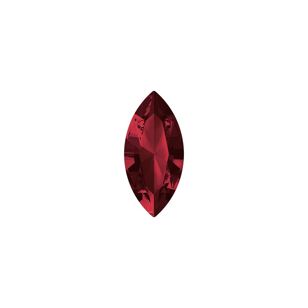 Tvarový krystal Swarovski Navette 4228 o rozměru 10/5mm a barevném provedení Siam F. Krystal je vhodný pro lepení a usazování do lůžek, polymerových hmot, či obšívání.