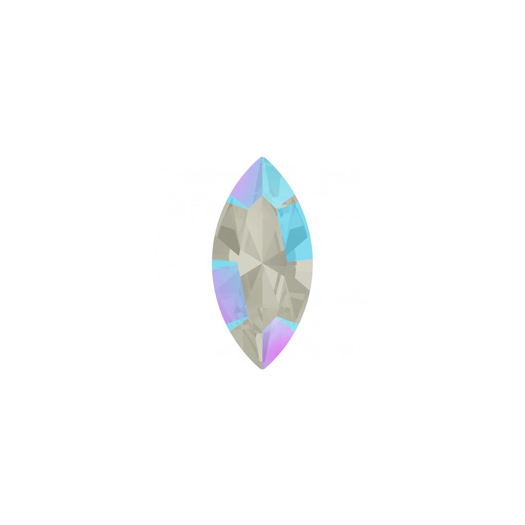 Tvarový krystal Swarovski Navette 4228 o rozměru 15/7mm a barevném provedení Light Sapphire Shimmer F. Krystal je vhodný pro lepení a usazování do lůžek, polymerových hmot, či obšívání.