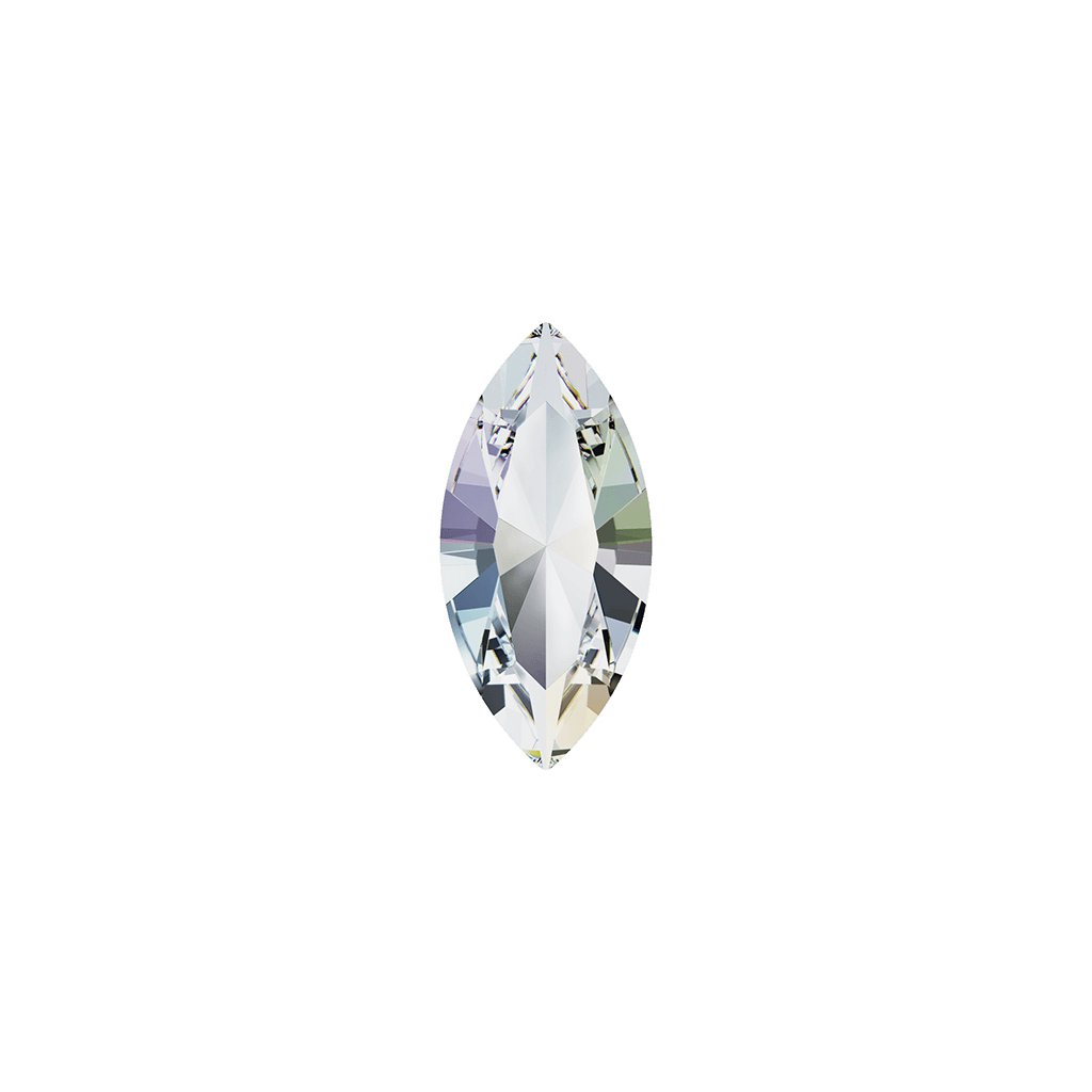 Tvarový krystal Swarovski Navette 4228 o rozměru 8/4mm a barevném provedení Crystal AB F. Krystal je vhodný pro lepení a usazování do lůžek, polymerových hmot, či obšívání.