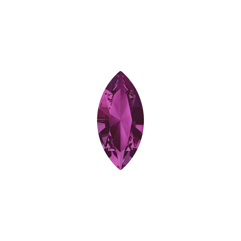 Tvarový krystal Swarovski Navette 4228 o rozměru 8/4mm a barevném provedení Fuchsia F. Krystal je vhodný pro lepení a usazování do lůžek, polymerových hmot, či obšívání.