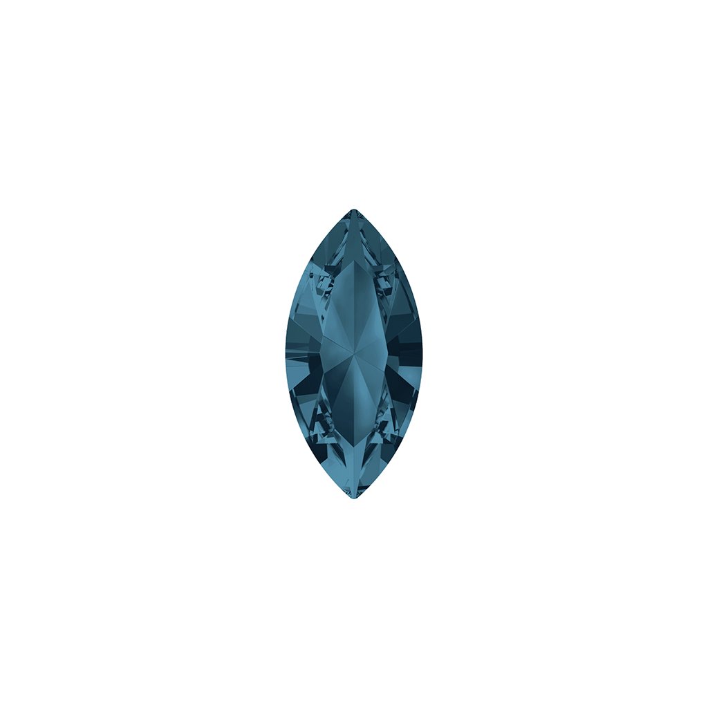 Tvarový krystal Swarovski Navette 4228 o rozměru 8/4mm a barevném provedení Indicolite F. Krystal je vhodný pro lepení a usazování do lůžek, polymerových hmot, či obšívání.