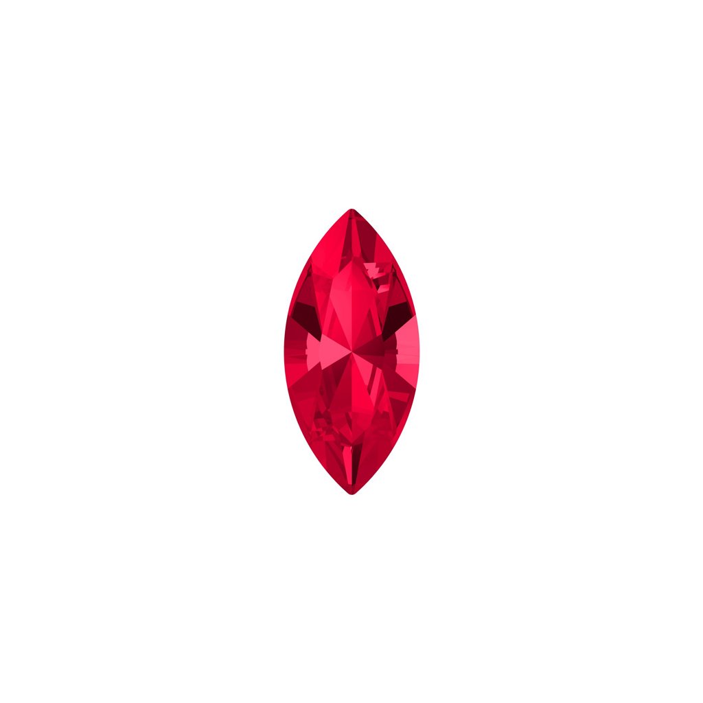 Tvarový krystal Swarovski Navette 4228 o rozměru 8/4mm a barevném provedení Scarlet F. Krystal je vhodný pro lepení a usazování do lůžek, polymerových hmot, či obšívání.