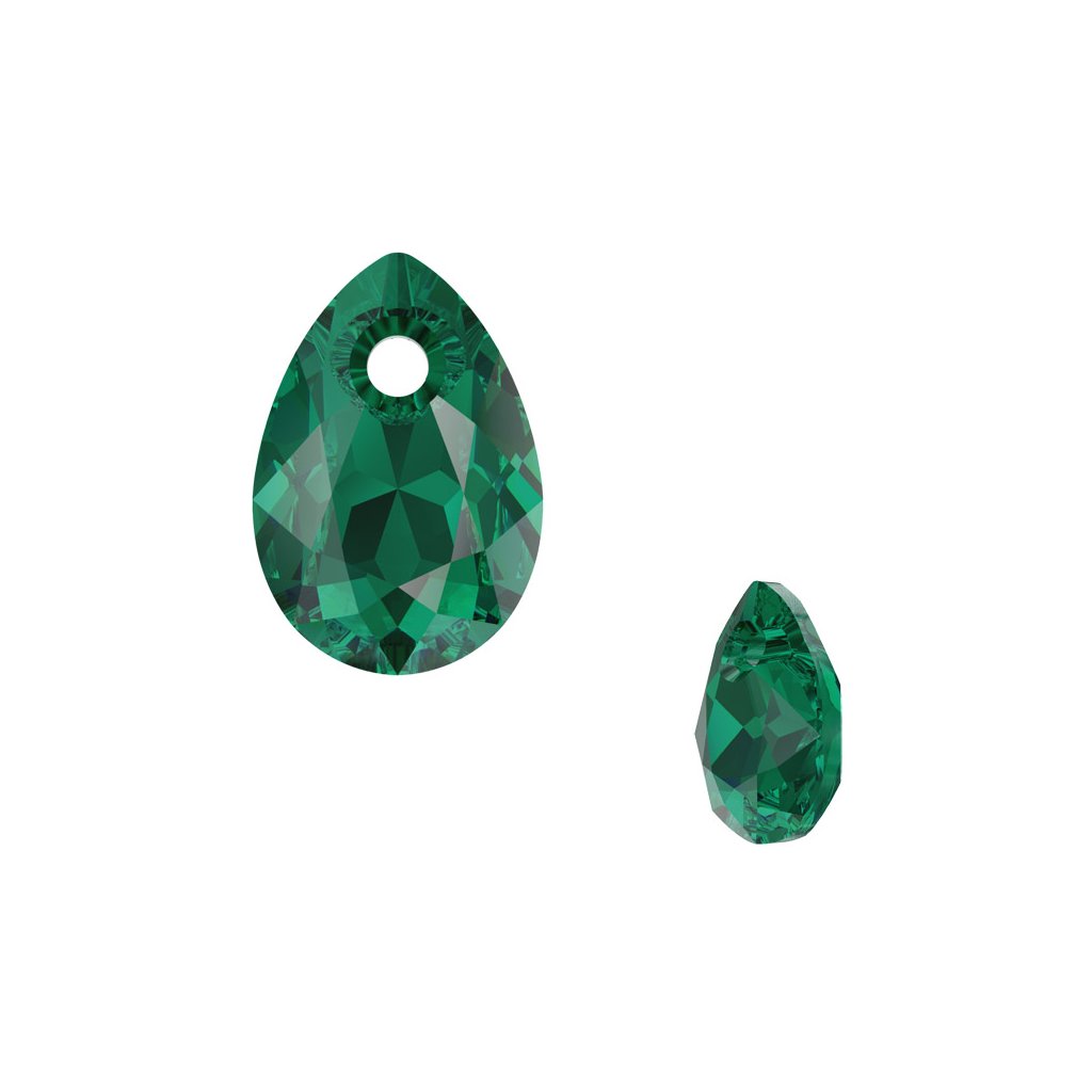 Přívěsek ve tvaru kapky Swarovski Pear Cut 6433 o rozměru 11,5mm a barevném provedení Emerald. Přívěsek můžete zavěsit na šlupnu, náušnice, kroužek či náramek.
