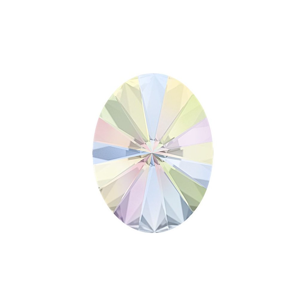 Tvarový krystal Swarovski Rivoli Oval 4122 v barevném provedení Crystal s úpravou AB F o rozměru 14/10,5mm. Krystal je určen k lepení do lůžek, polymerových hmot, či obšívání. Balení obsahuje jeden kus.