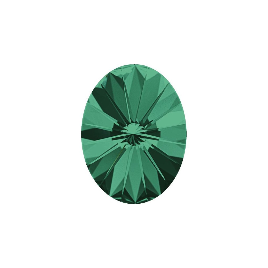 Tvarový krystal Swarovski Rivoli Oval 4122 v barevném provedení Emerald F o rozměru 14/10,5mm. Krystal je určen k lepení do lůžek, polymerových hmot, či obšívání. Balení obsahuje jeden kus.