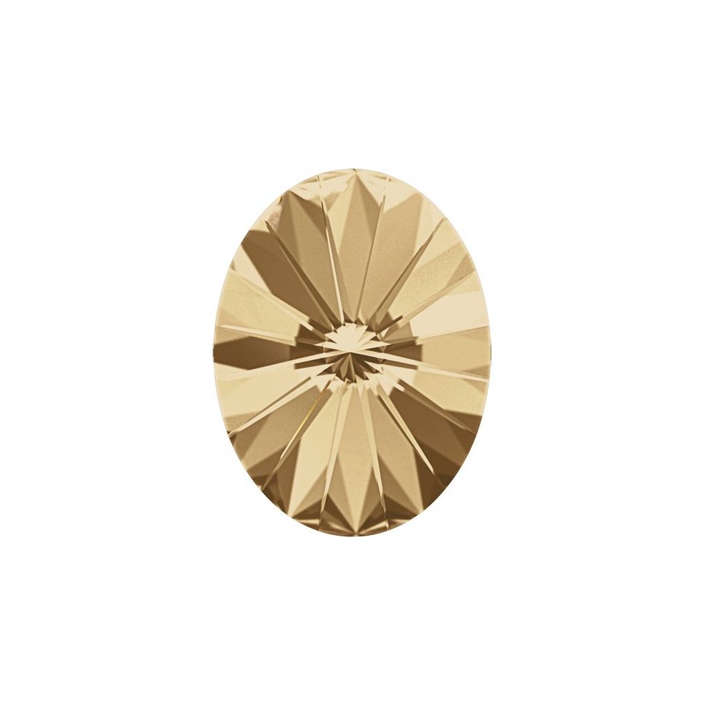 Tvarový krystal Swarovski Rivoli Oval 4122 v barevném provedení Crystal s úpravou Golden Shadow F o rozměru 14/10,5mm. Krystal je určen k lepení do lůžek, polymerových hmot, či obšívání. Balení obsahuje jeden kus.