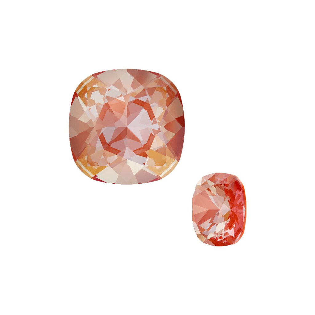 Tvarový krystal Swarovski Square 4470 o rozměru 12mm a barevném provedení Orange Glow DeLite. Krystal je vhodný pro lepení a usazování do lůžek, polymerových hmot, či obšívání.