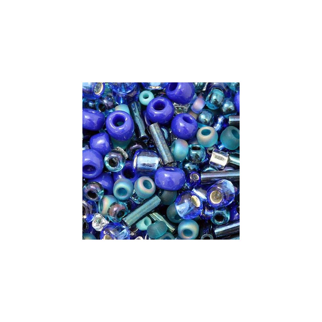 TOHO mix a barevném provedení Blue/Green. Dokonale tvarově pravidelný japonský rokajl od firmy TOHO Co., Ltd. Díky většímu průměru průtahu je vhodný na obšívání a vyšívání. .