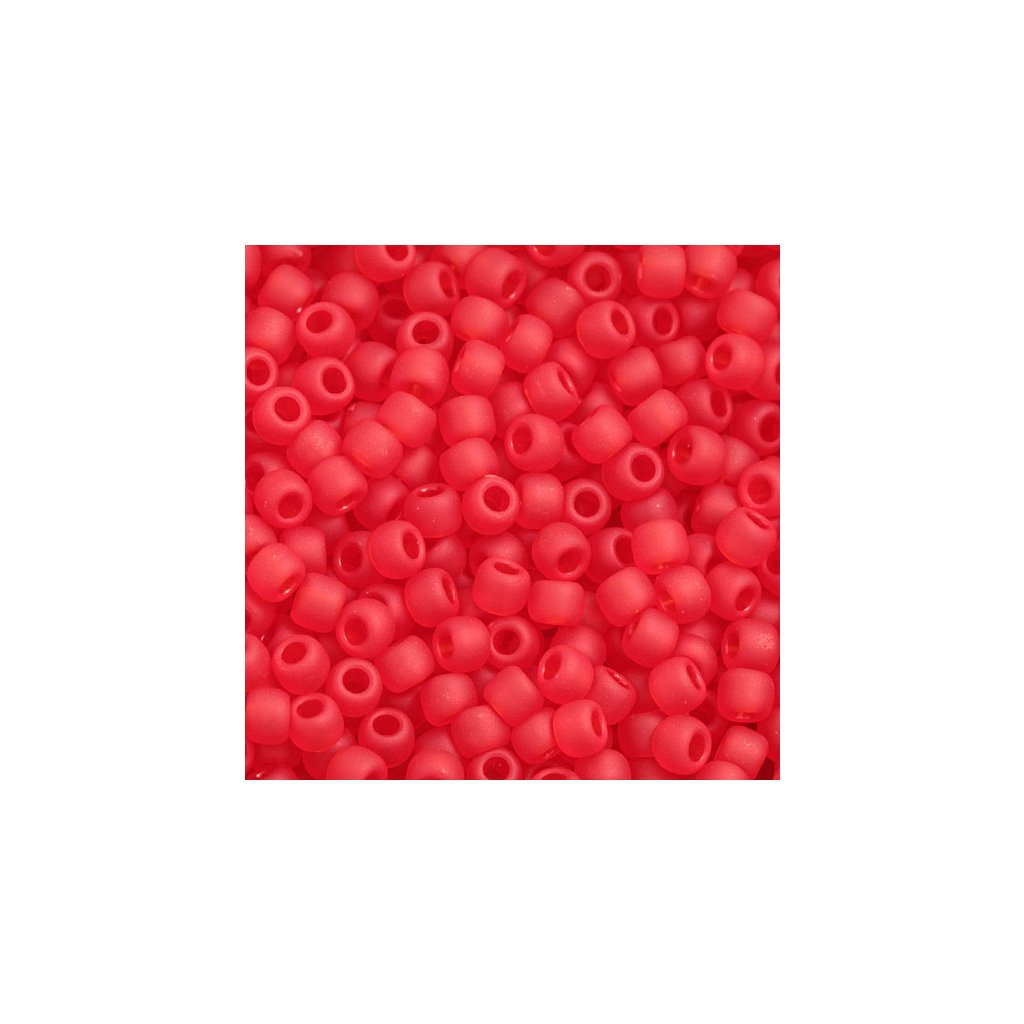 TOHO Round o rozměru 11/0 (2,2mm) a barevném provedení Frosted Ruby. Dokonale tvarově pravidelný japonský rokajl od firmy TOHO Co., Ltd. Díky většímu průměru průtahu je vhodný na obšívání a vyšívání. Cena za balení 10g (cca 1000ks).