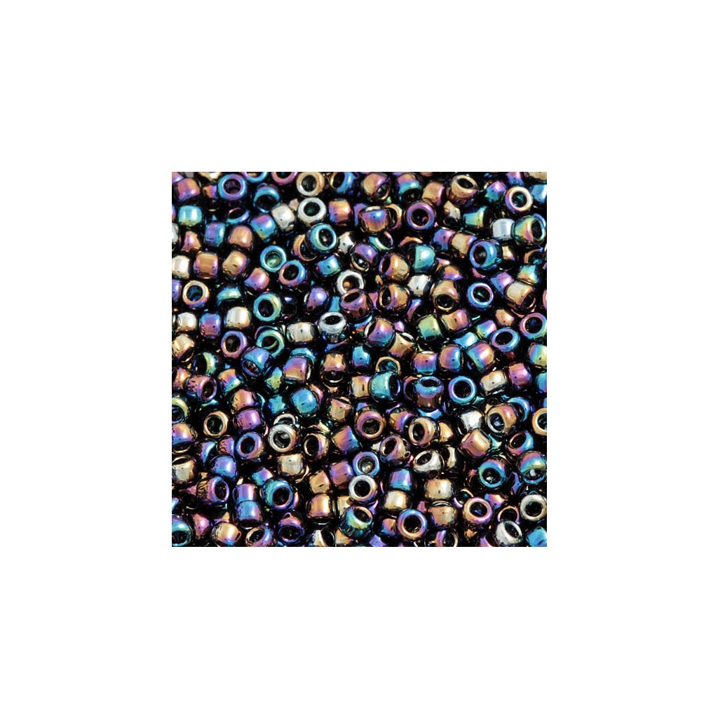 TOHO Round o rozměru 15/0 (1,5mm) a barevném provedení Metallic Rainbow Iris. Dokonale tvarově pravidelný japonský rokajl od firmy TOHO Co., Ltd. Díky většímu průměru průtahu je vhodný na obšívání a vyšívání. Cena za balení 5g (cca 1200ks).