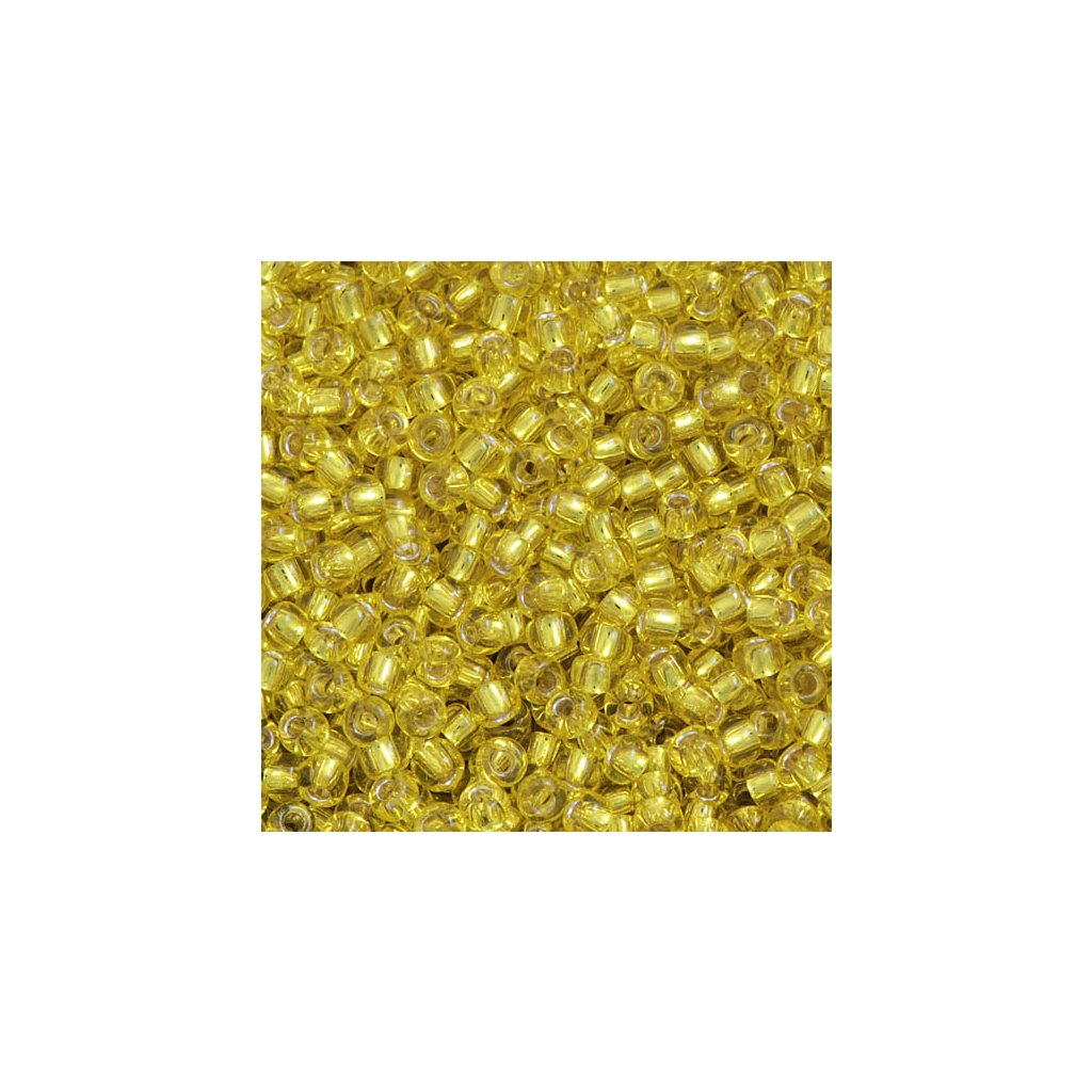 TOHO Round o rozměru 15/0 (1,5mm) a barevném provedení Silver Lined Lemon. Dokonale tvarově pravidelný japonský rokajl od firmy TOHO Co., Ltd. Díky většímu průměru průtahu je vhodný na obšívání a vyšívání. Cena za balení 5g (cca 1200ks).